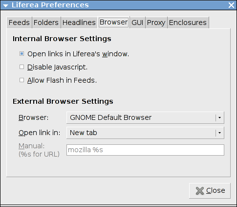 ob Liferea angeforderte Links im internen oder externen Browser