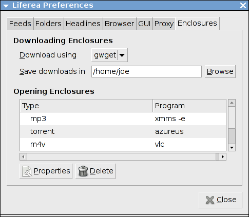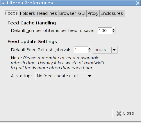 HTTP-Proxy konfiguriert werden, den Liferea zum Herunterladen
