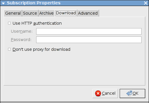 Questa scheda ti permette di disabilitare l'uso delle impostazioni globali del proxy e di abilitare l'autenticazione HTTP durante lo scaricamento del notiziario. Abilita la casella di controllo ed inserisci i valori appropriati per nome utente e password per poter utilizzare i notiziari protetti da password. In genere non avrai bisogno di utilizzare queste impostazioni perché il nome utente e la password ti verranno richiesti durante l'abbonamento al notiziario che richiede l'autenticazione.